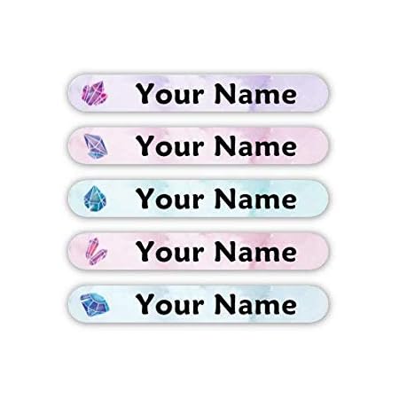 100 Mini Personalized Waterproof Custom Name Tag Labels(Gems Theme) - Dishwasher & Microwave Safe - Great for School, Daycare, Camp Gear